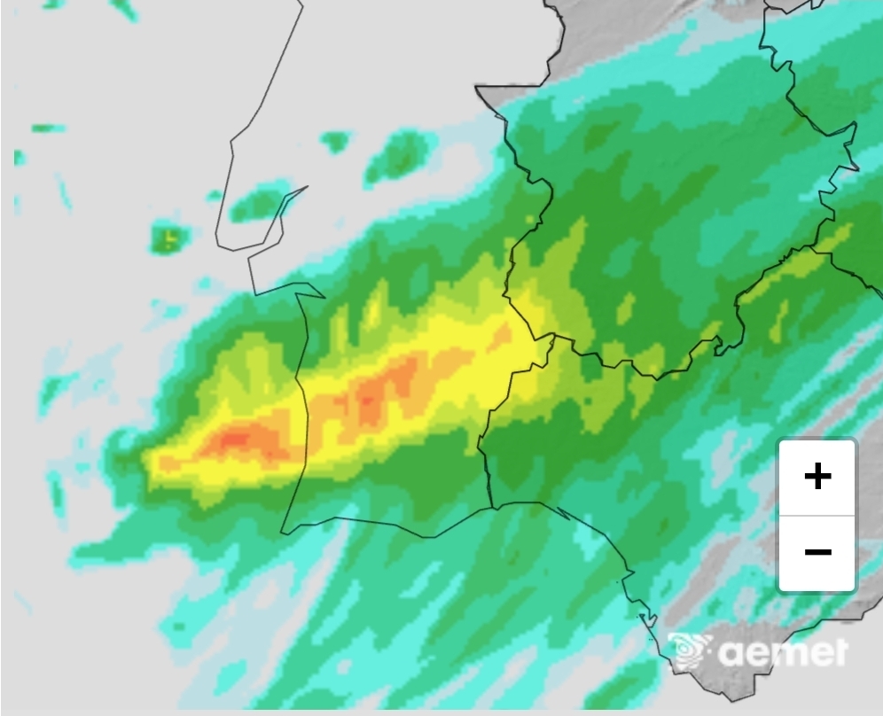 Uma depressão irá atravessar o Alentejo esta quarta-feira com bastante instabilidade associada. Espera-se que a partir do início da manhã a chuva seja forte e persistente, em especial no Baixo Alentejo (conforme mapa abaixo indicado) e acompanhada de trovoadas e rajadas forte de vento.
